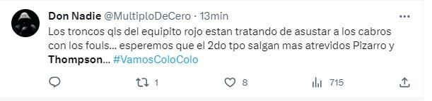 Los hinchas albos no han tardado en manifestar su malestar en las redes sociales y tribunas del Monumental. Alegan que, ante la evidente superioridad técnica y táctica de Colo Colo, la UC ha decidido apostar por la fricción y el juego duro, buscando desestabilizar y sacar de foco al conjunto local.